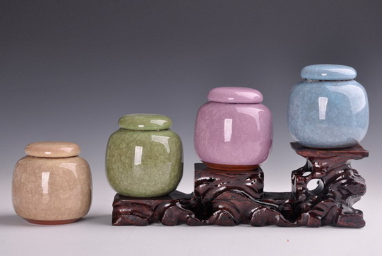 【特点】“冰裂釉”因整体有似冰裂的痕迹,因此而得名.该产品选用天然的陶瓷泥料,运用独特的加工技术精制而成,具有外形光亮细腻美观,罐壁厚,罐口采用锡箔密封,密封性良好,适合装好茶叶等特点。“冰裂釉”最大的特点在多层次的立体结构裂纹,造成犹如玫瑰花瓣般的层面,加上釉色的变化,让人爱不释手,欲看穿方休。