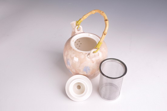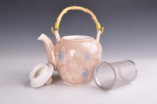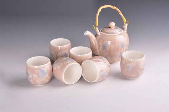 【品名】粉色结晶釉高藤柄壶高日式杯 8头茶具组