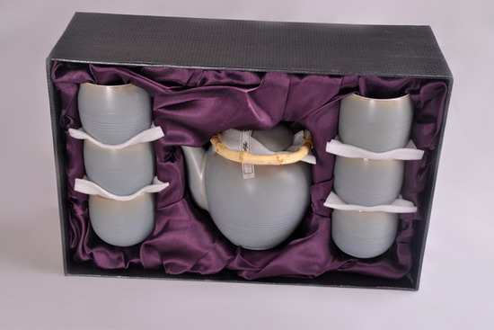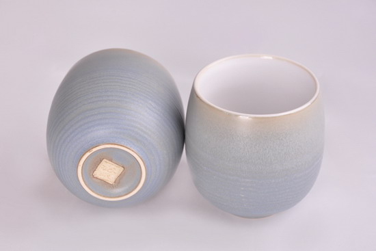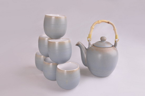 浅亚光蓝釉高藤杯高日式杯8头茶具组