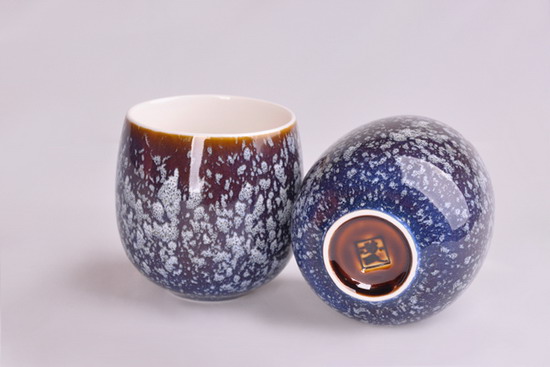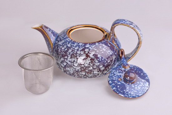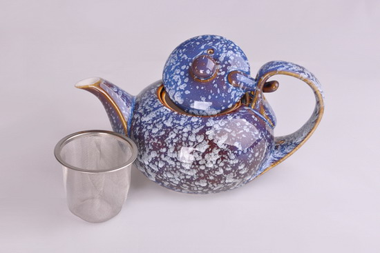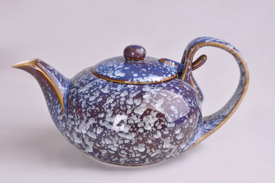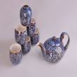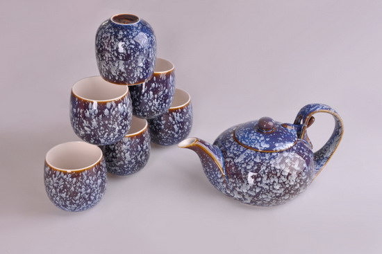 蓝白花釉大弯柄壶高日式杯8头茶具组