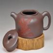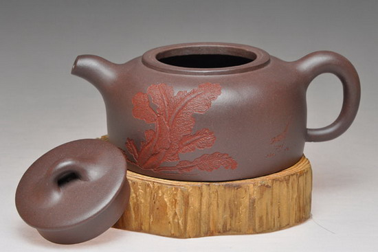 紫泥属于吃火温较高的矿料,烧成颜色偏紫.泡养以后似红泥料.但质感比红泥强烈!为宜兴黄龙山矿脉所开挖出来的紫砂原矿提练而成,因矿脉里铁质成份较高,泥料内所含颗粒较大结构疏松器身明显成双气孔结构,空气对流顺畅气孔对流较好;日久使用,渐露锋芒!