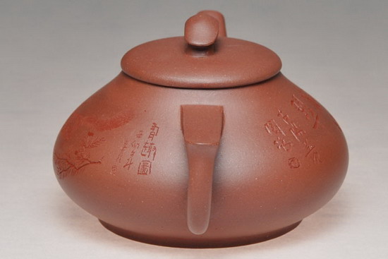 紫泥属于吃火温较高的矿料,烧成颜色偏紫.泡养以后似红泥料.但质感比红泥强烈!为宜兴黄龙山矿脉所开挖出来的紫砂原矿提练而成,因矿脉里铁质成份较高,泥料内所含颗粒较大结构疏松器身明显成双气孔结构,空气对流顺畅气孔对流较好;日久使用,渐露锋芒!